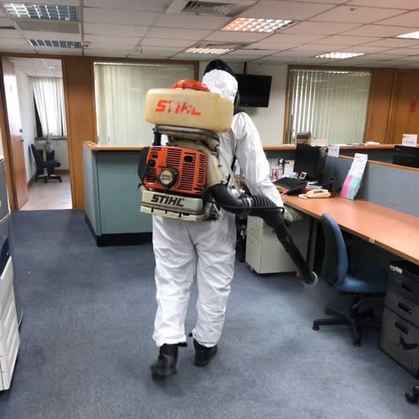 針對各式病毒與細菌,使用環保署合格藥劑,利用霧化噴灑方式進行環境消毒。
